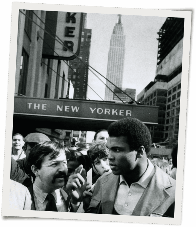Muhammad Ali retired to The New Yorker after his hard-fought loss to Joe Frazier in the Fight of the Century, which took place across the street at Madison Square Garden. This was his first professional loss, but he recovered to beat Frazier in 1974 and 1975.