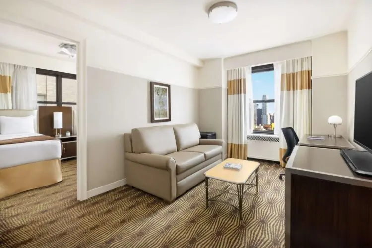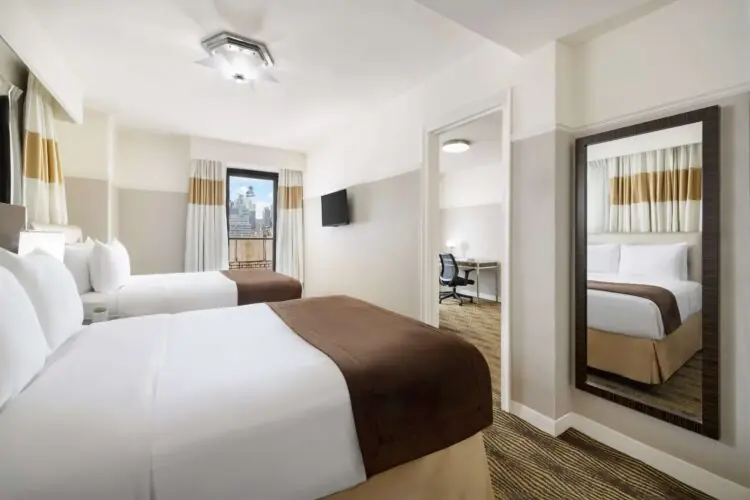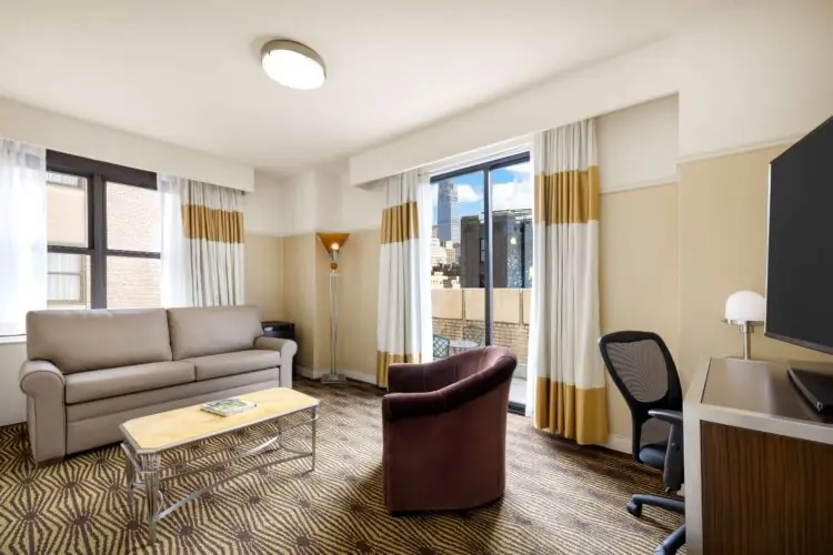Our Accessible Family Suites enable us to provide all our guests with an unforgettable Art Deco Manhattan experience. Spacious and thoughtfully designed, these suites offer classic New Yorker style with ADA-accessible features for comfort and ease, just moments from New York City’s most iconic attractions.