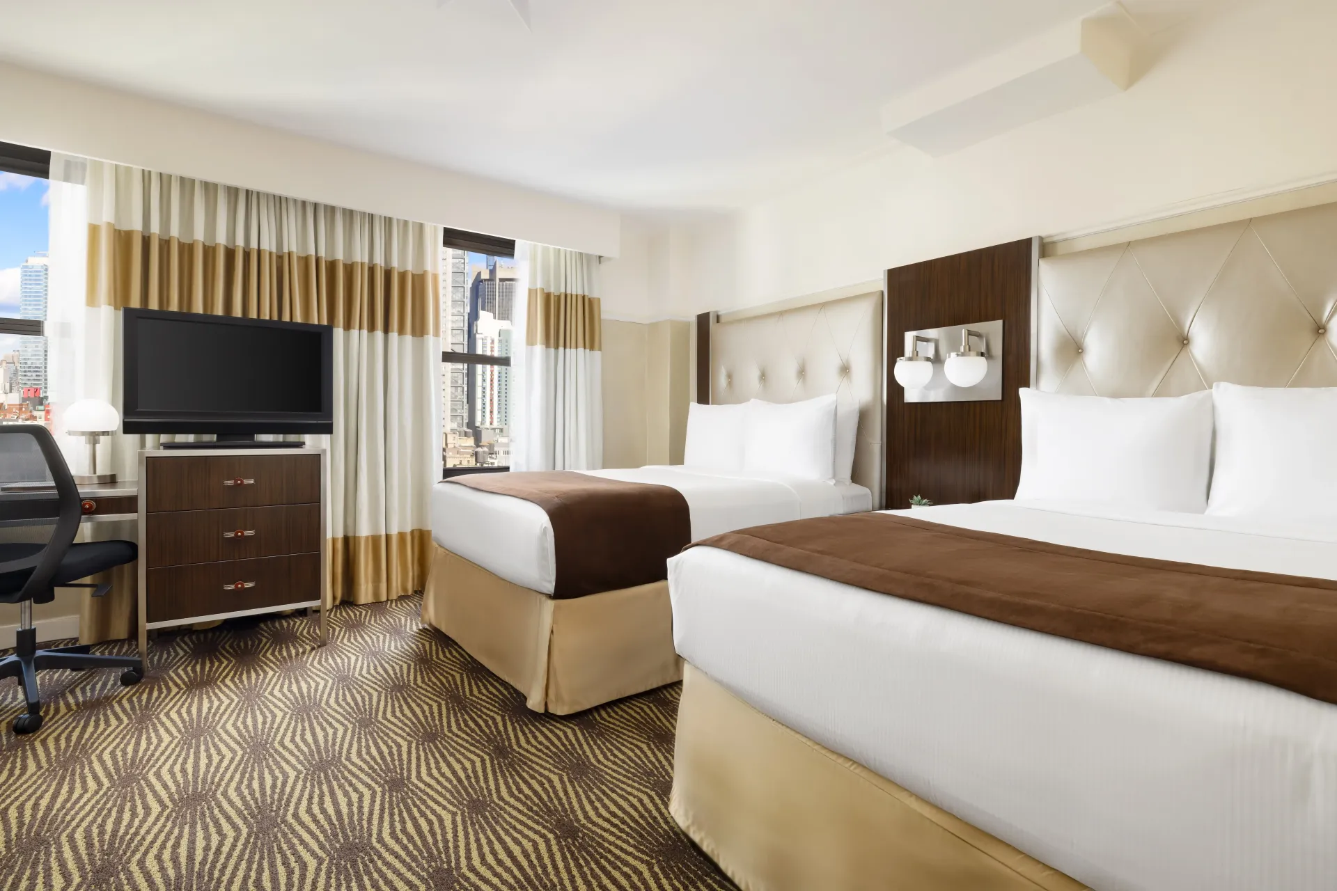 On The New Yorker’s 19th floor and above, our Metro Double Rooms share our iconic Art Deco style featuring two double beds. Perfect for friends or family, these Midtown retreats blend classic Manhattan design with vintage-inspired décor and thoughtful amenities. They make every stay in the city that never sleeps easy.